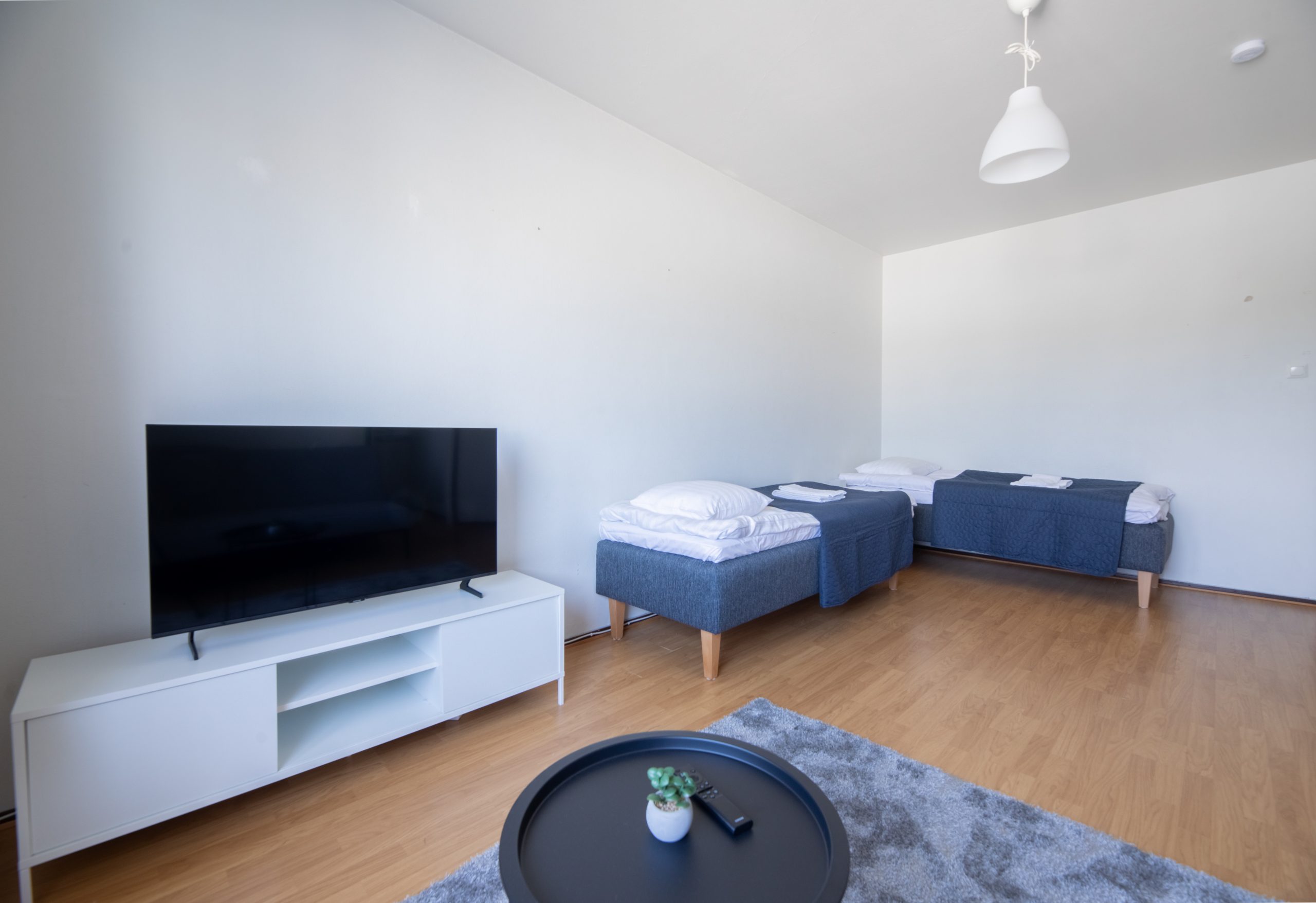 Квартира расположена в самом центре городских услуг – продуктовые магазины, рестораны и кафе находятся всего в двух шагах. Рабочие места, такие как Stora Enso и офисы, а также спортивные сооружения, такие как тренажерные залы и парки, легко доступны и обеспечивают бесперебойную повседневную жизнь.