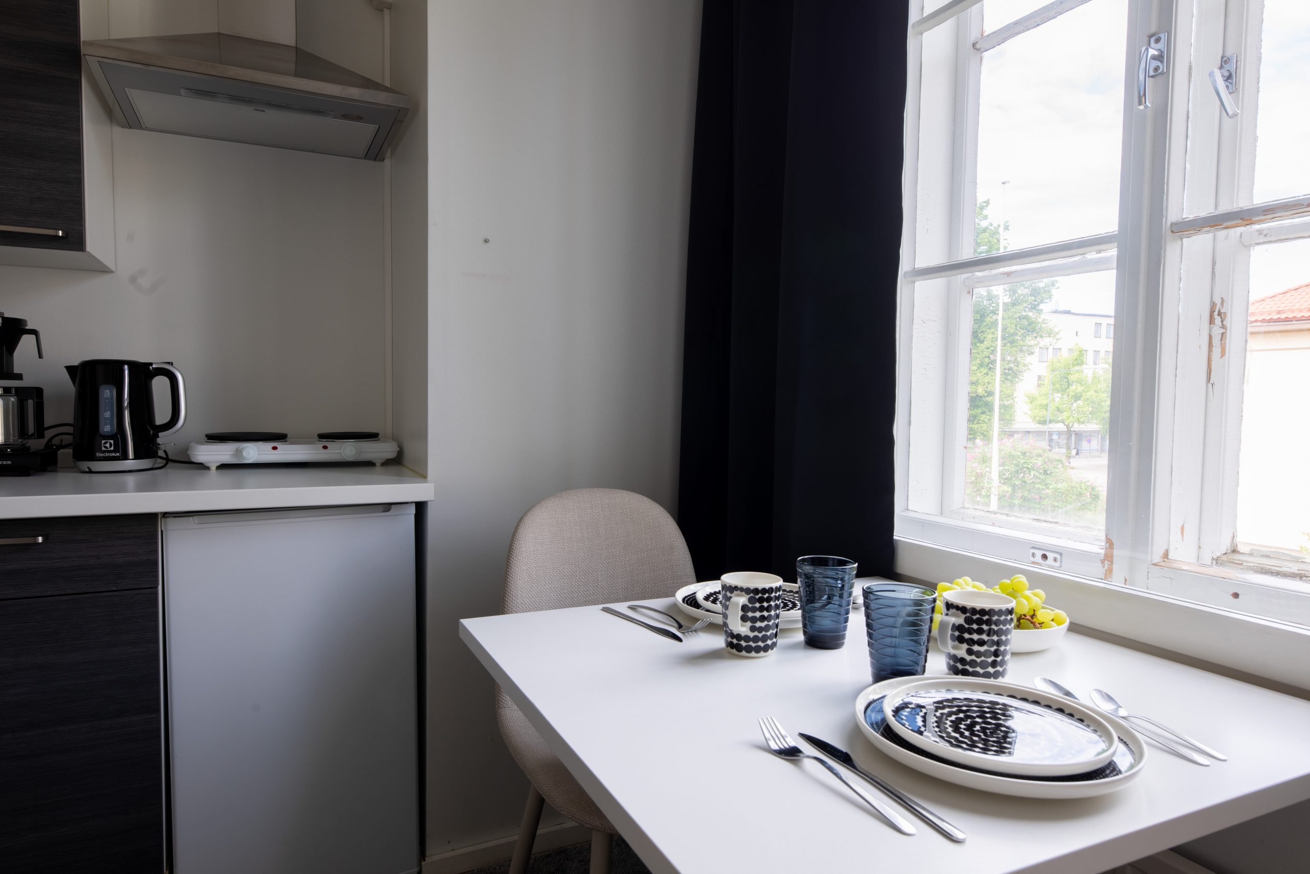 Квартира расположена в самом центре городских услуг – продуктовые магазины, рестораны и кафе находятся всего в двух шагах. Рабочие места, такие как Stora Enso и офисы, а также спортивные сооружения, такие как тренажерные залы и парки, легко доступны и обеспечивают бесперебойную повседневную жизнь.